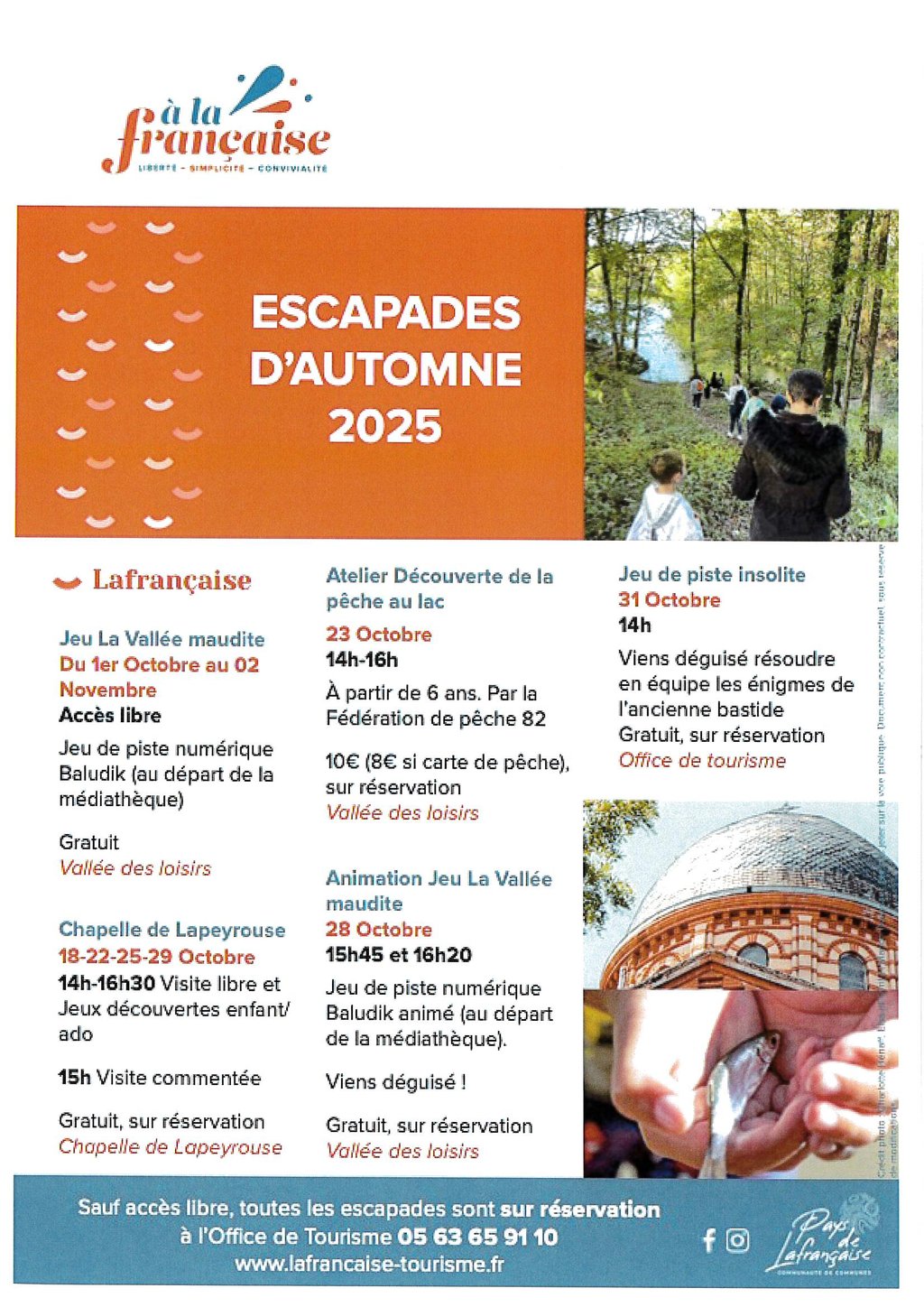 Chapelle de Lapeyrouse le 18-22-25-29 octobre : - 14h-16h30 visite libre et jeux découvertes enfants/ado - 15h visite commentée.