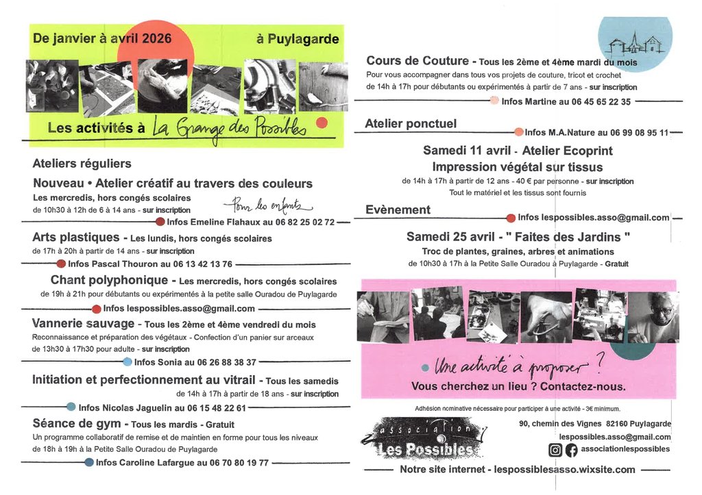 Les activités à La Grange des Possibles de janvier à avril 2026