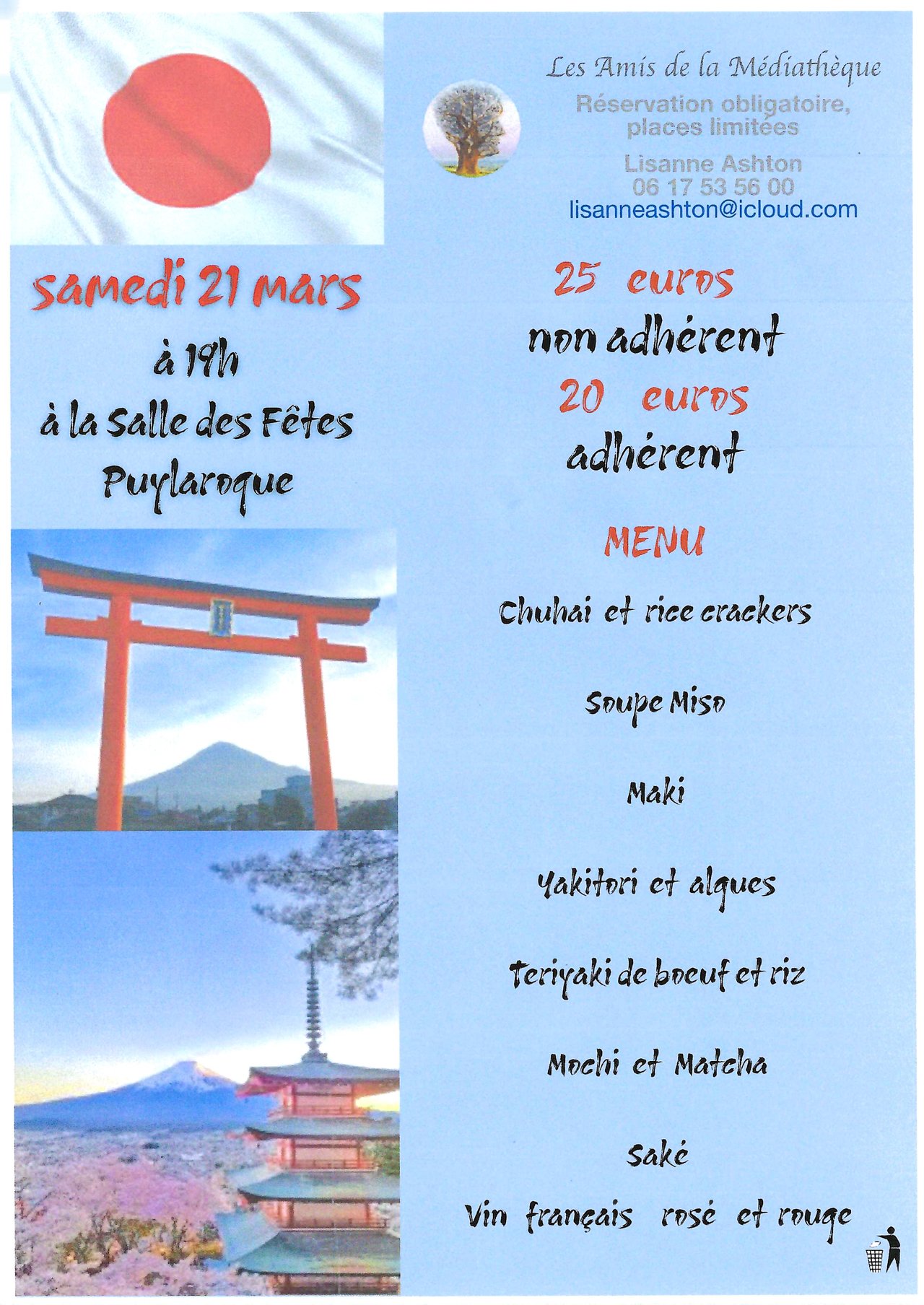 un REPAS JAPONAIS à la salle des fêtes à 19 h