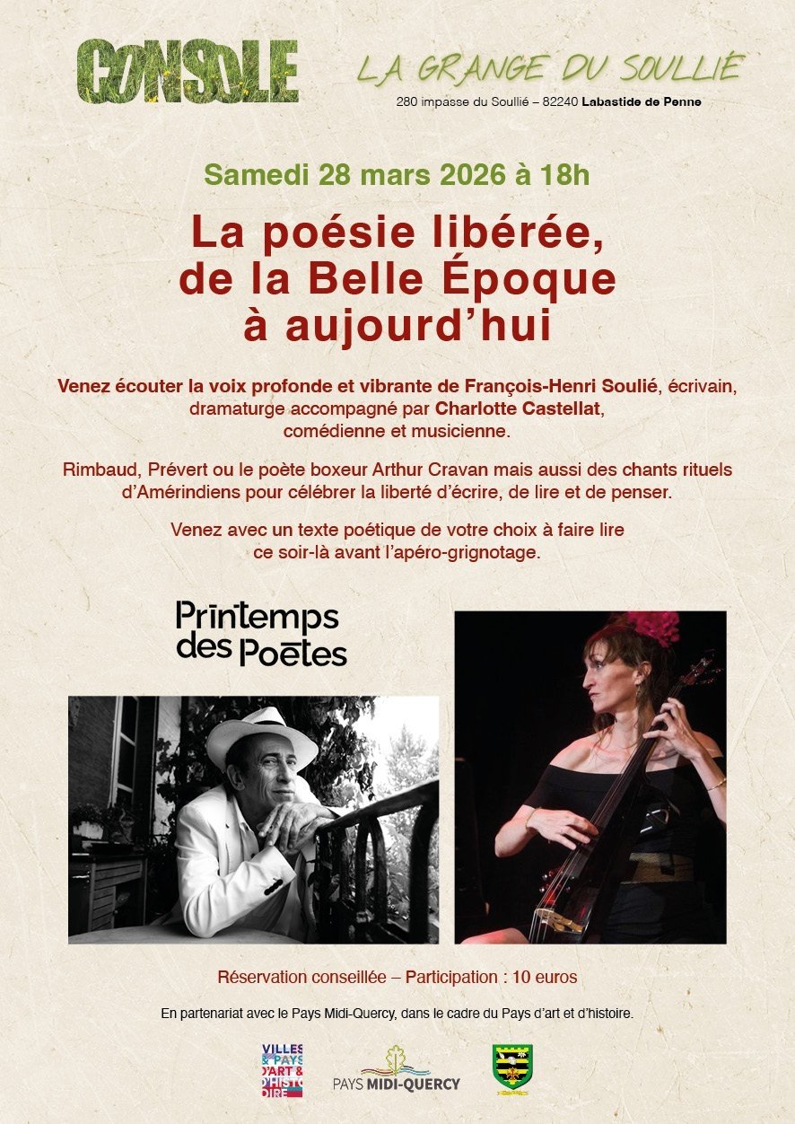 Venez écouter la voix profonde et vibrante de François Henri Soulié, écrivain, dramaturge et musicienne, accompagné par Charlotte Castellat, comédienne.