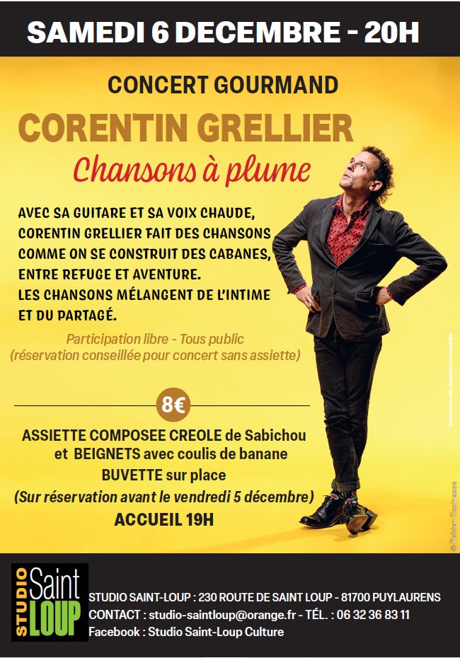 C'est au Studio Saint-Loup, le samedi 6 décembre, à 20h. Accueil à partir de 19h.
