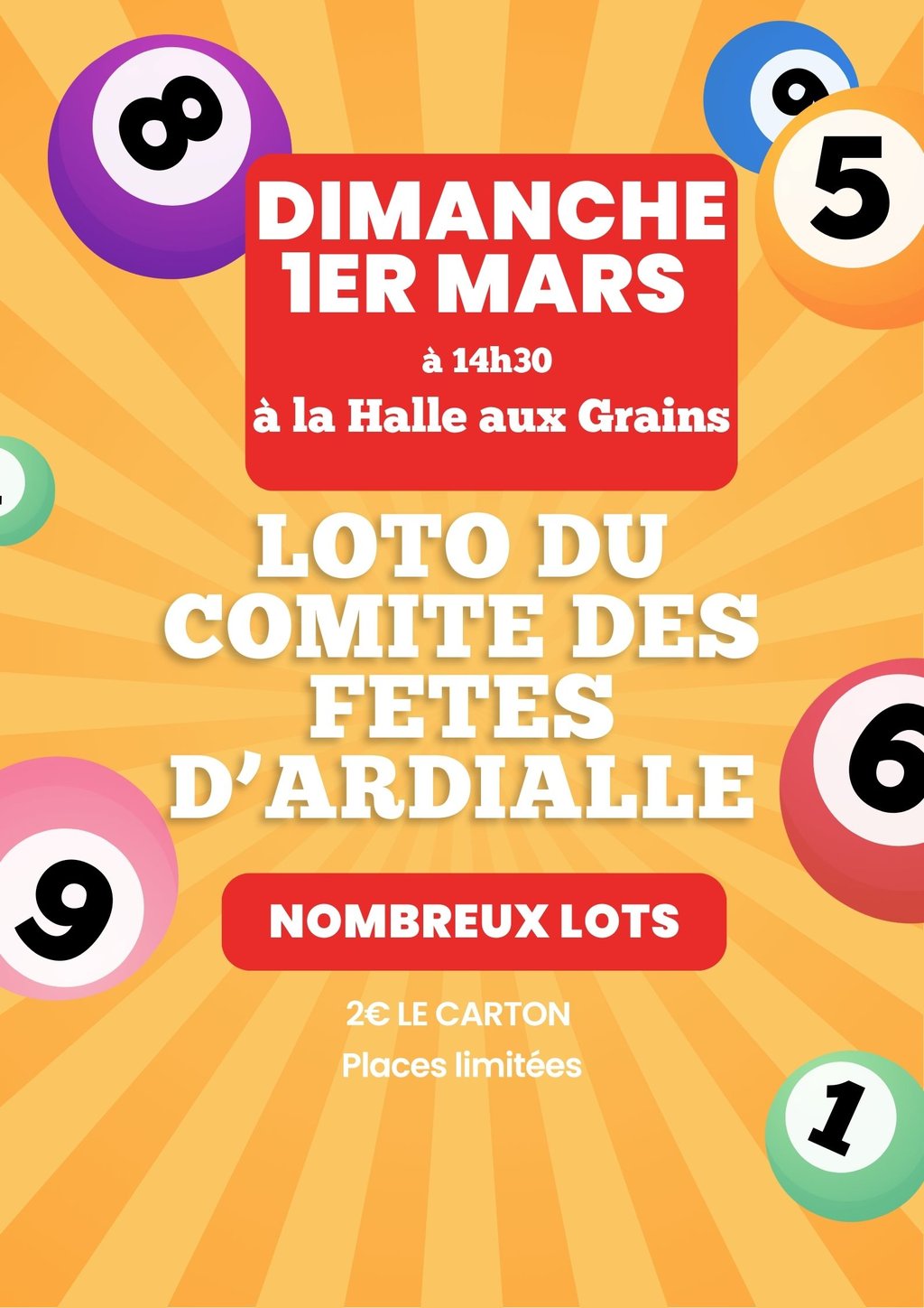 Loto du Comité des Fêtes d'Ardialle, dimanche 1er mars, à 14h30 🎱