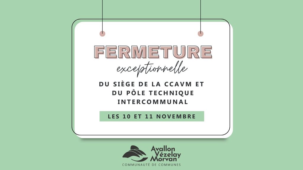 🚫 SIÈGE CCAVM ET PÔLE TECHNIQUE INTERCOMMUNAL FERMÉS LES 10 ET 11/11
