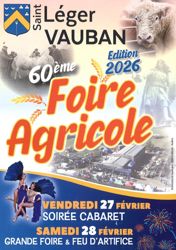 La foire agricole de Saint-Léger-Vauban se déroulera cette année sur 2 jours, les vendredi 27 et samedi 28 février 2026.