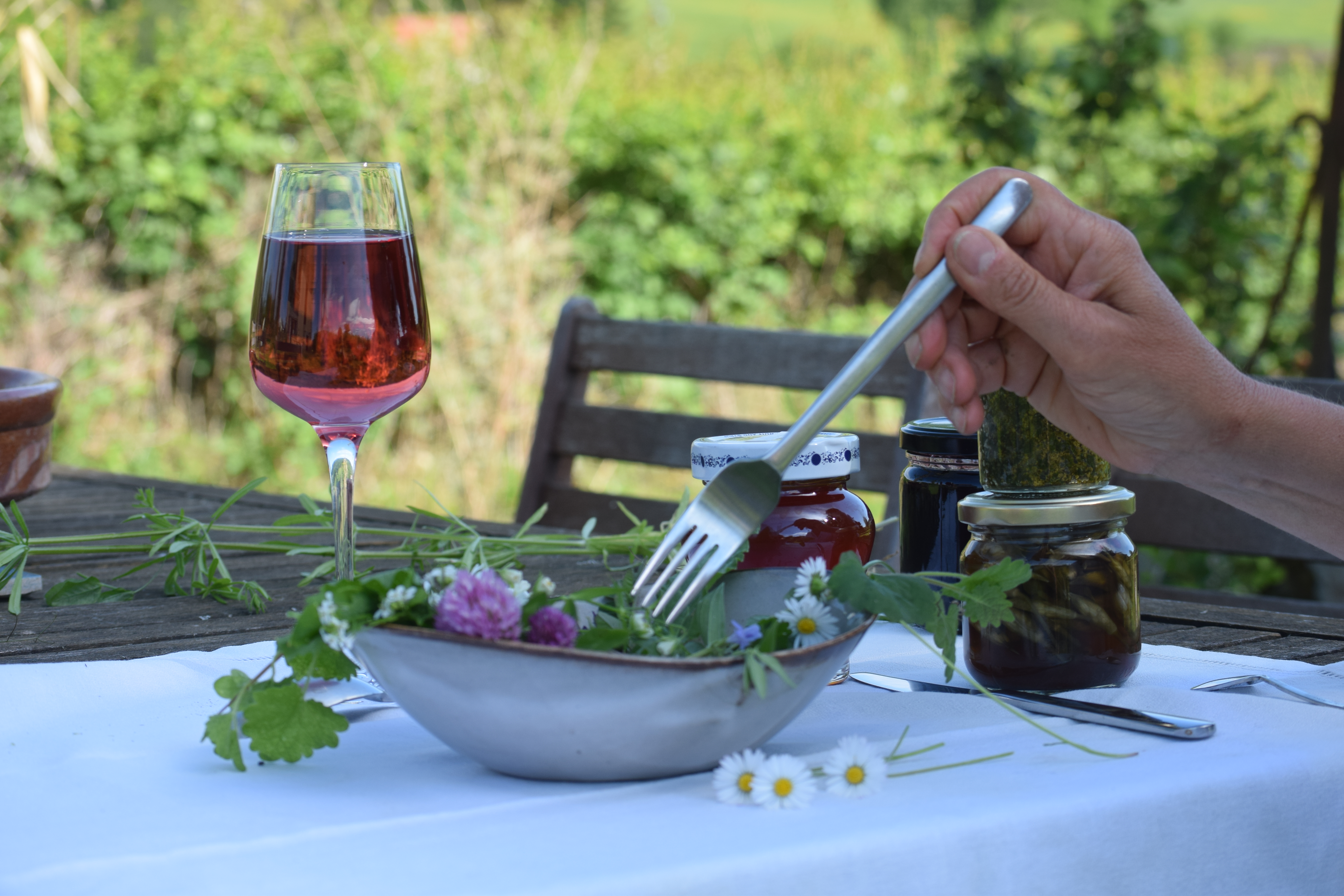 Identification de plantes en chemin et dans le jardin, cueillettes, dégustation d’un repas sauvage en commun, confection d’un mets sucre ou salé à remporter chez soi, récapitiulatif ludique des plantes vues en journée.