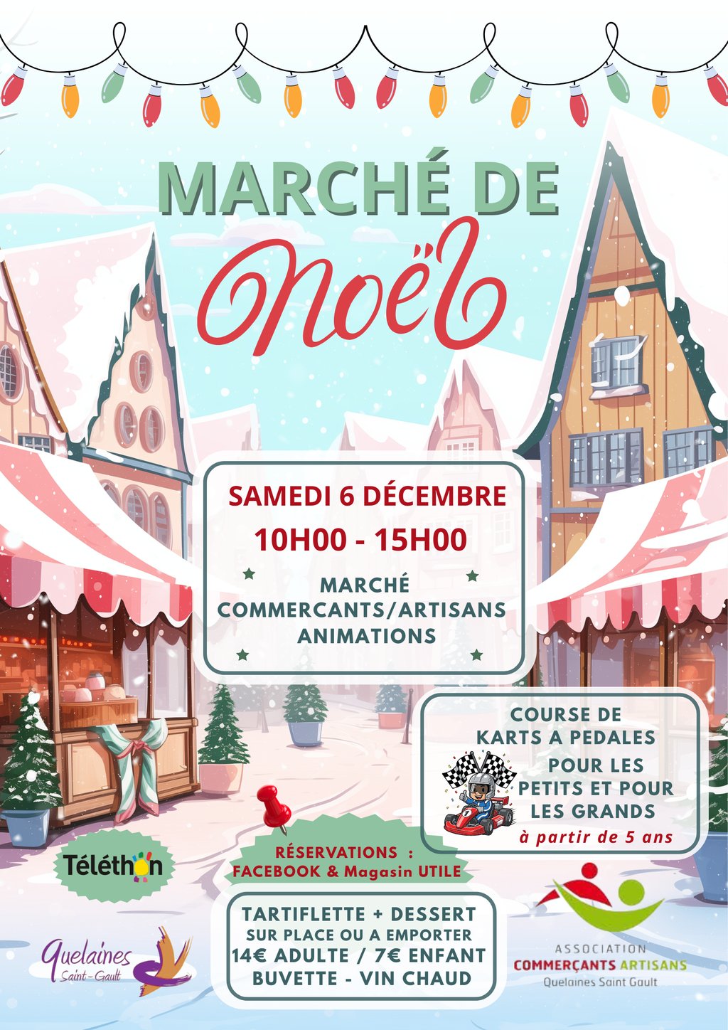 Parcourez les stands des commerçants et artisans, découvrez des créations uniques, profitez d’animations tout au long de la journée… et testez la nouveauté : une course de karts à pédales ouverte à tous dès 5 ans ! Une buvette et du vin chaud sont à votre disposition.