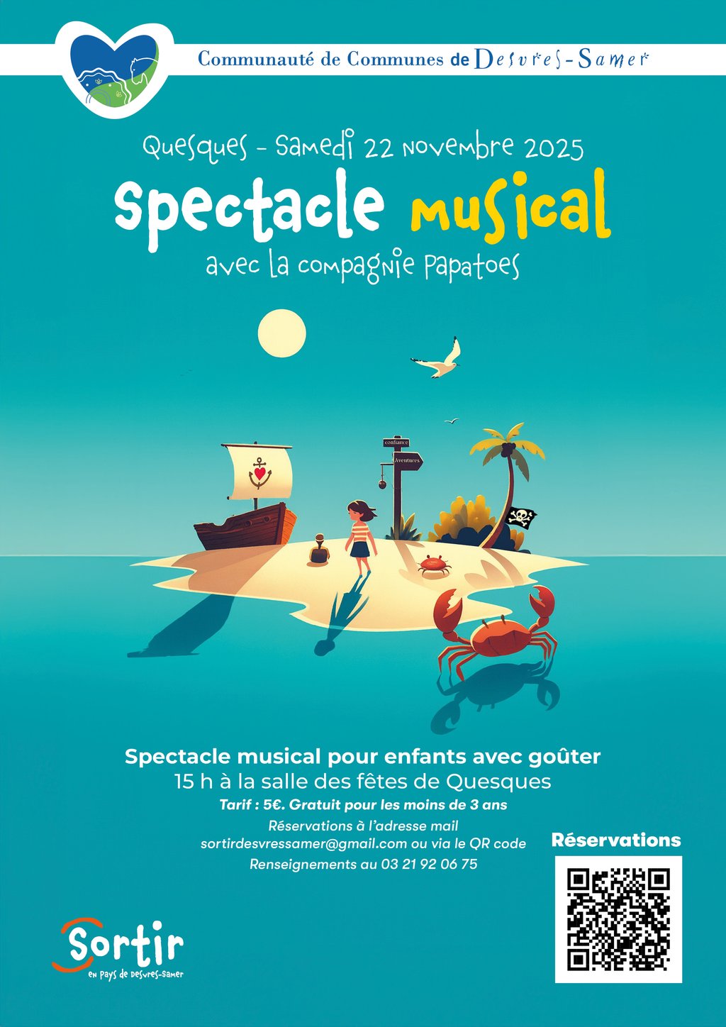 Réservations à l’adresse mail : sortirdesvressamer@gmail.com ou en ligne https://www.billetweb.fr/spectacle-papatoes