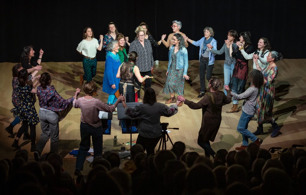 Les deux chœurs mettront leurs voix à l'unisson et feront vibrer les Halles, emportés par l'énergie communicative de Delphine.