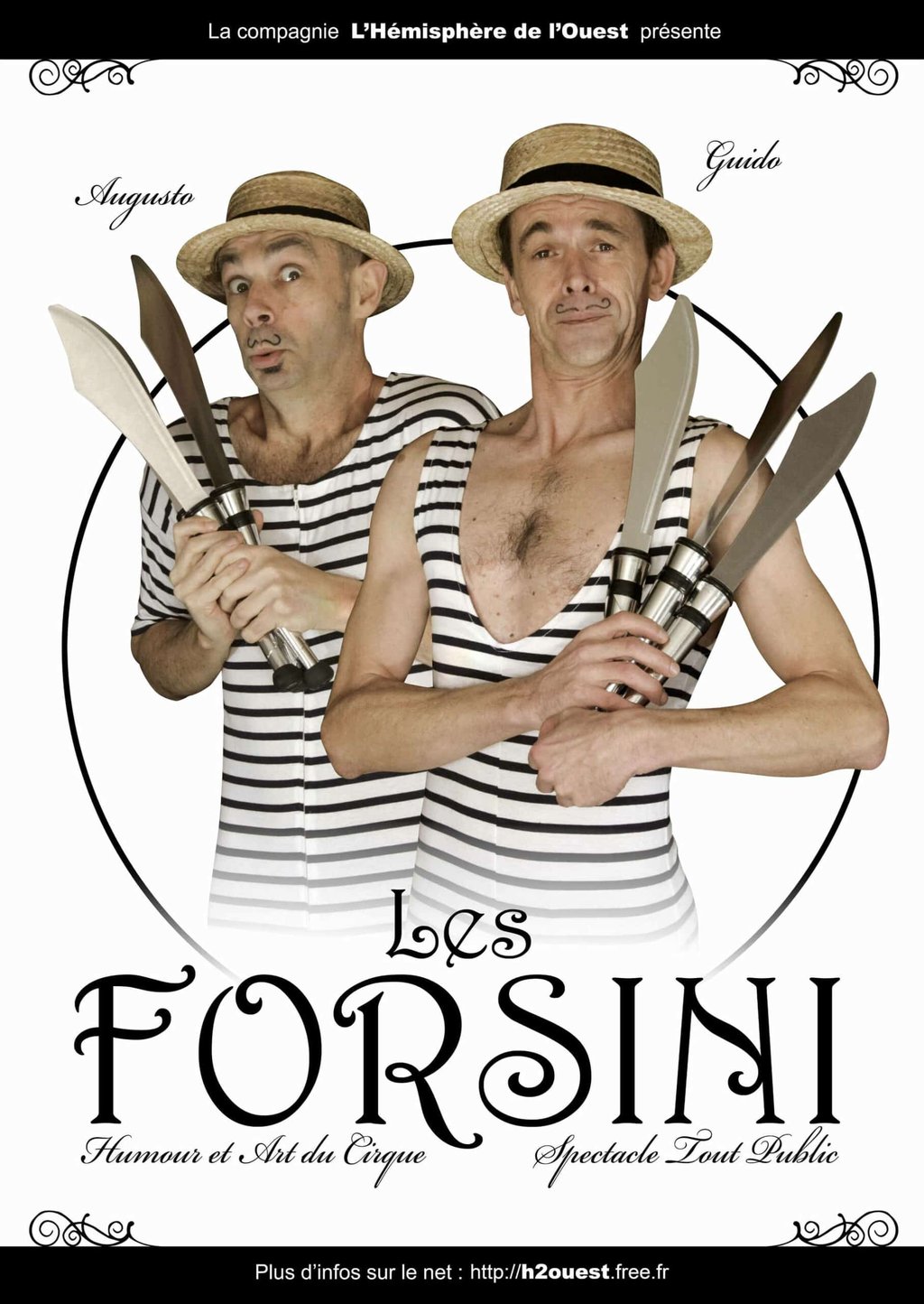 D’une agilité à la Houdini*, d’une habileté à la Rastelli**, les frères Forsini vous éblouiront grâce à leurs numéros plus époustouflants les uns que les autres. Dans la grande tradition du début du siècle, ces hommes de force de père en fils, vous séduiront par leur physique (p)athlétique…