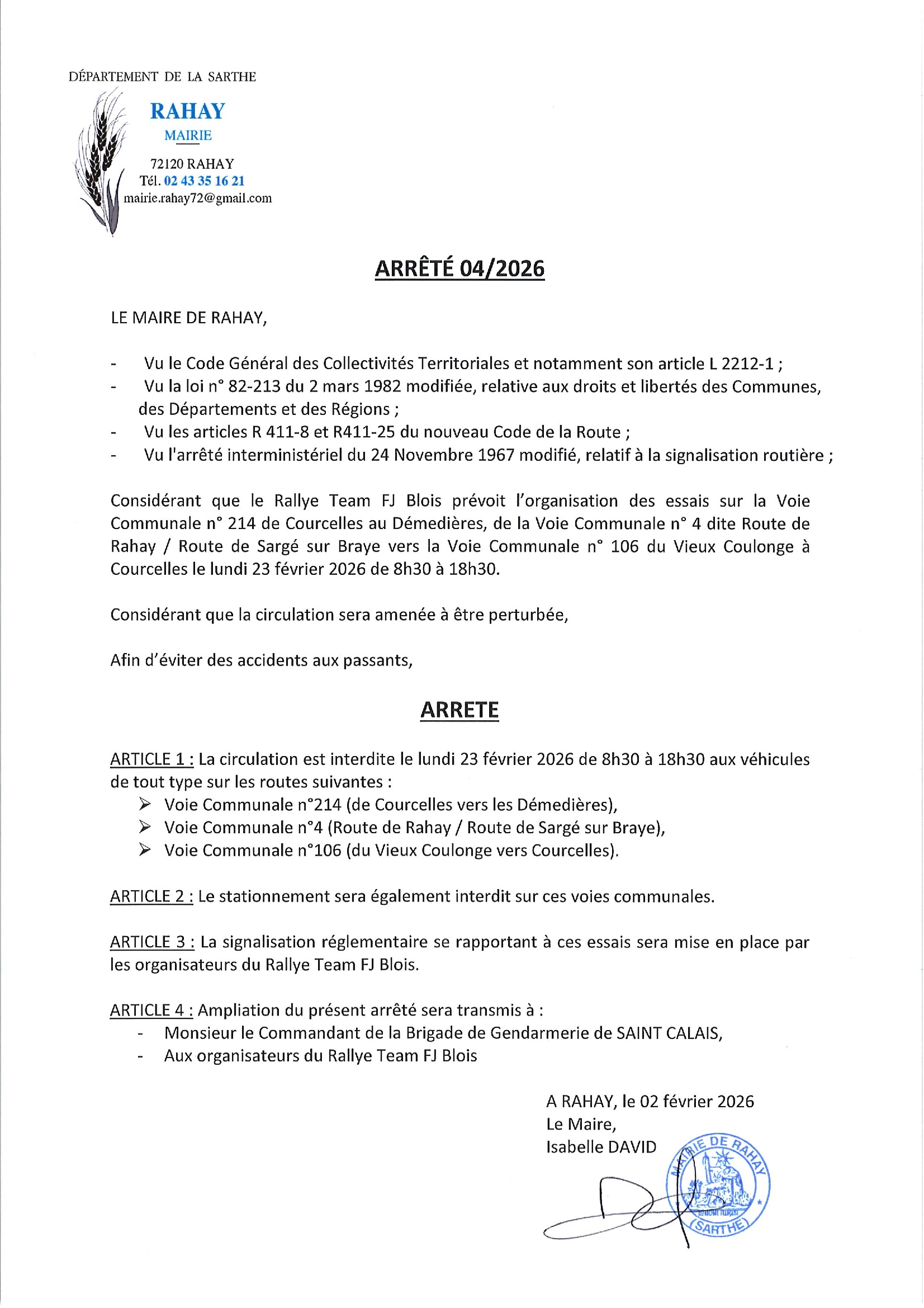 Publié le lundi 02 février 2026 - Rahay