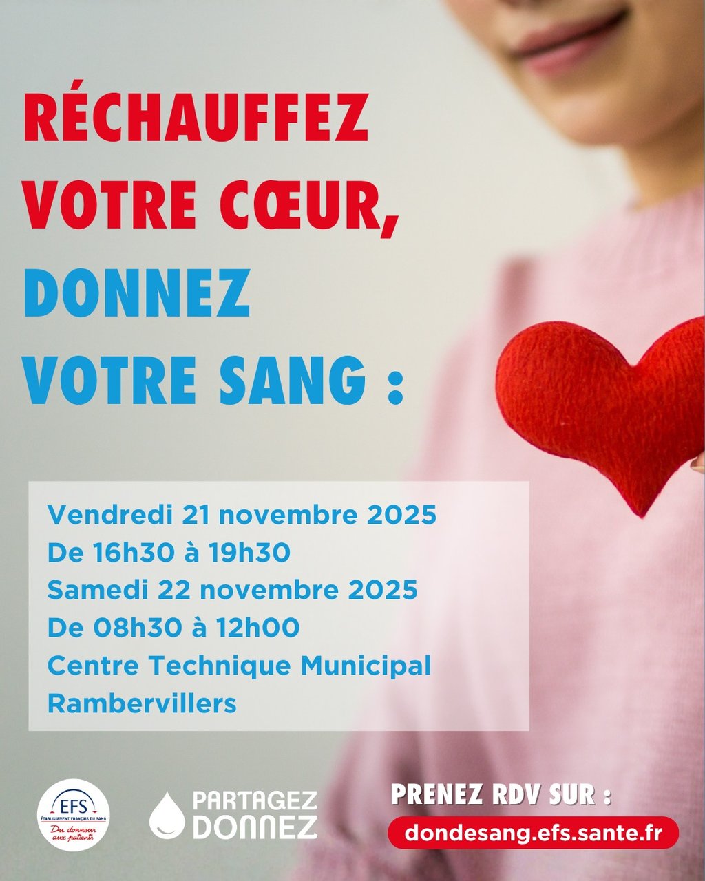 L’Établissement Français du Sang Grand Est, en partenariat avec l’Association des Donneurs de Sang Bénévoles organise une collecte de sang dans notre commune au mois de novembre.