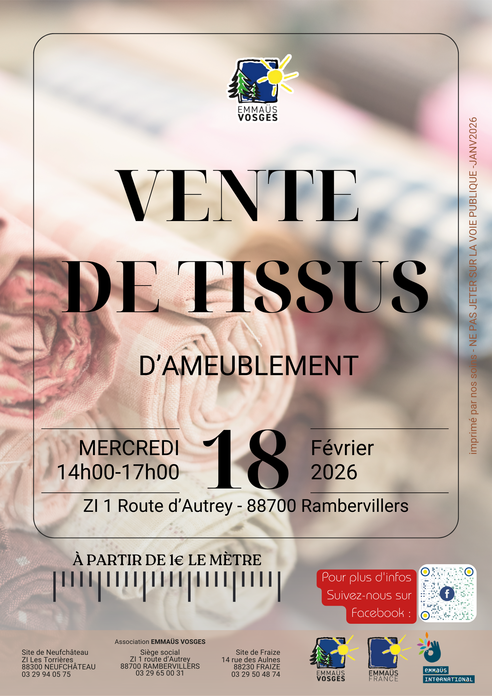Rendez-vous mercredi 18 février 2026 de 14h à 17h à ZI 1 Route d’Autrey – 88700 Rambervillers.
