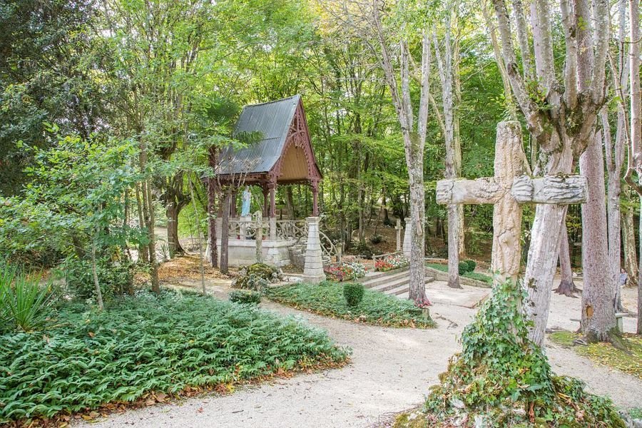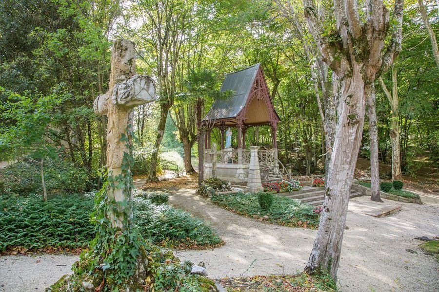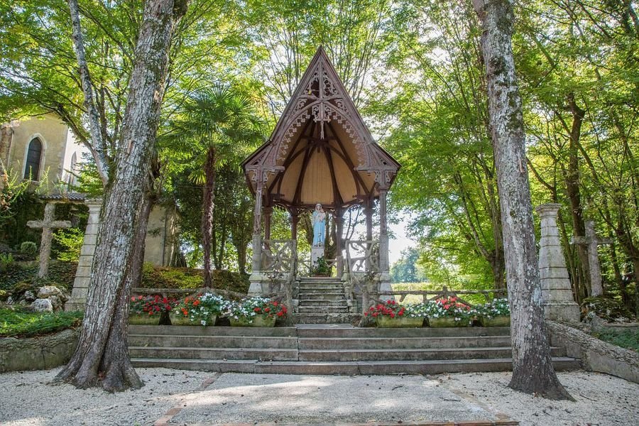 Étonnant lieu de pèlerinage situé à l’emplacement d’une «apparition» de la Vierge au 16e siècle. Au fil du temps, plusieurs chapelles y ont été édifiées. C’est en 1864 que fut bénie la dernière. Le parc abrite chênes et ormeaux plusieurs fois centenaires, pieusement conservés et une source aux vertus guérisseuses. Les 14 stations d’un chemin de croix en ciment armé, reproduisant chacune un arbre différent, viennent dessiner une surprenante église de verdure qui accueille de nombreux mariages en plein air. Vers 1850, un bourgeois de Gondrin songea à exploiter l’eau abondante de la source par la construction d’un établissement de bains avec hébergement, toujours visible.