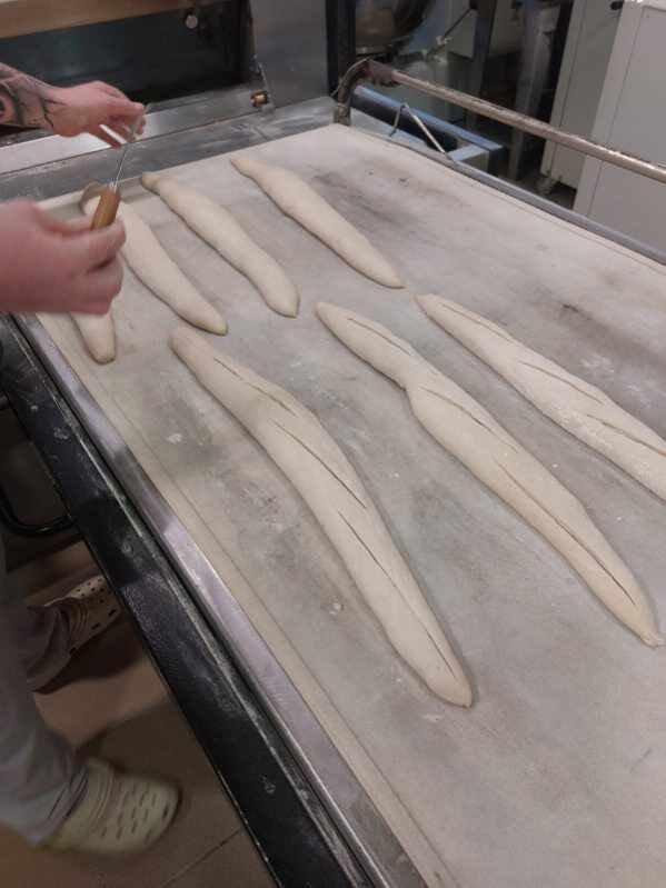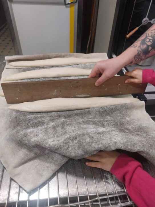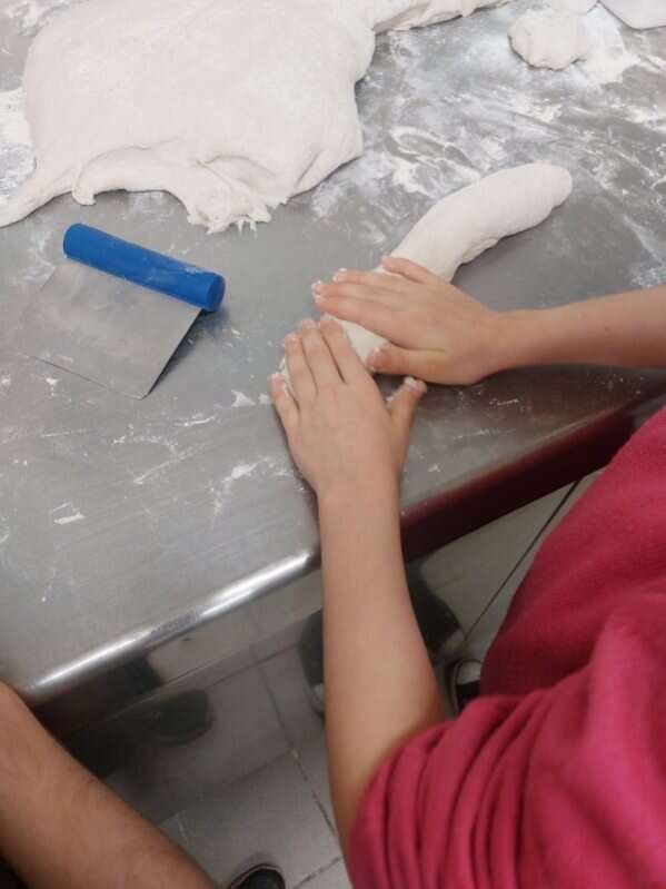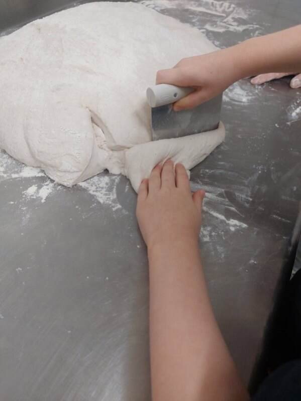 En compagnie du boulanger et de son équipe, chacun a pu, lors de cette visite, réaliser toutes les étapes de la fabrication du pain : préparation de la pâte, découpe des pâtons, façonnage.