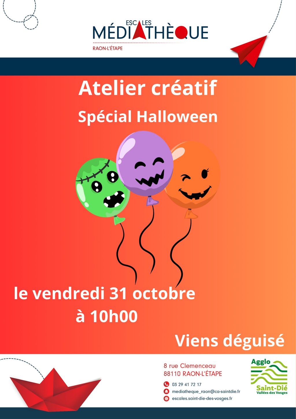 Un atelier créatif est proposé aux enfants le vendredi 31 octobre à 10h00 à la médiathèque.