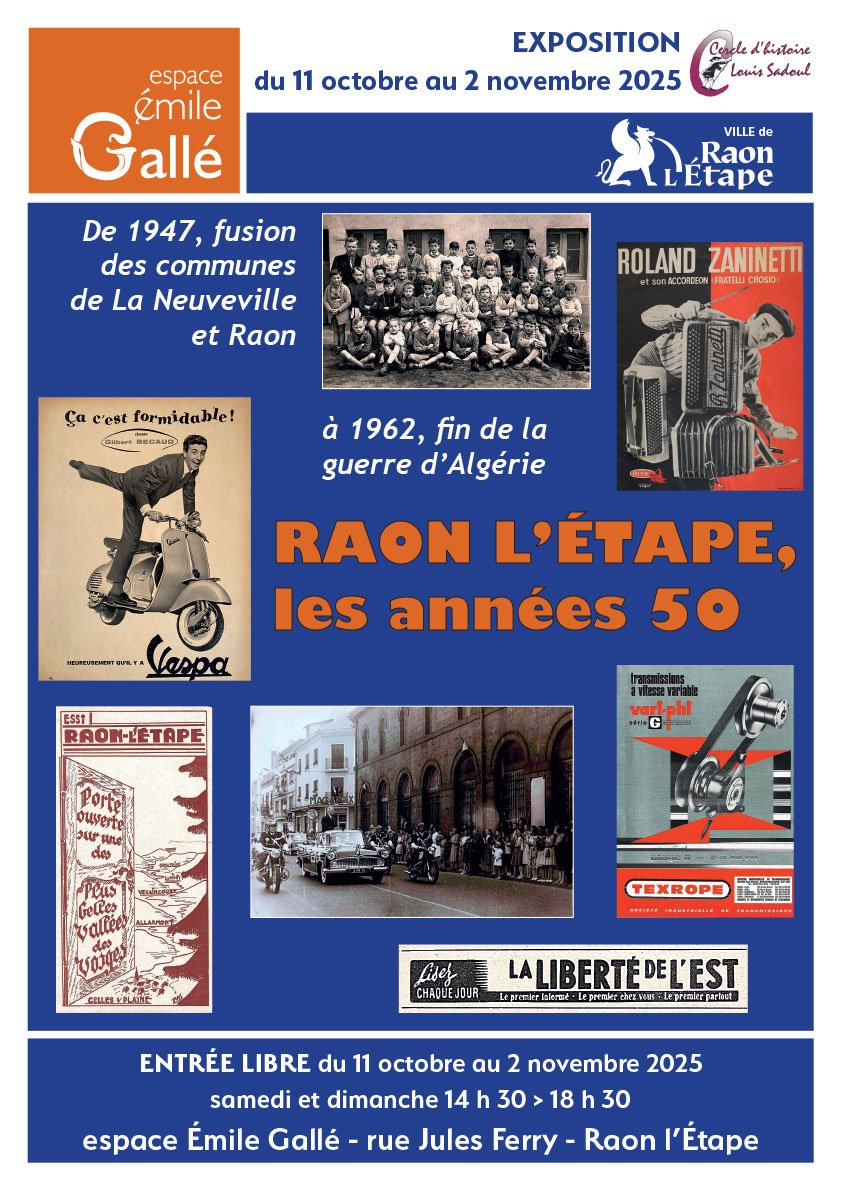 Cercle d’histoire Louis Sadoul a choisi d’évoquer les années qui ont suivi la fin de la Seconde guerre mondiale depuis la fusion des deux communes de Raon l’Étape en 1947 jusqu’à la fin de la guerre d’Algérie en 1962.
