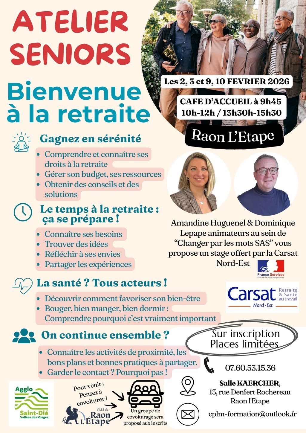 La Ville de Raon l’Etape et la Communauté d’agglomération de Saint-Dié des Vosges organisent un atelier« Bienvenue à la retraite » gratuit, lundi 9 et mardi 10 février 2026.