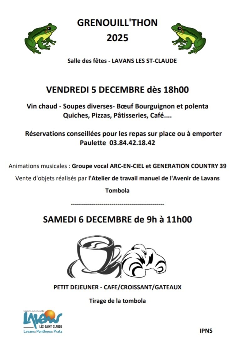 Réservations conseillées auprès de Paulette au 03 84 42 18 42