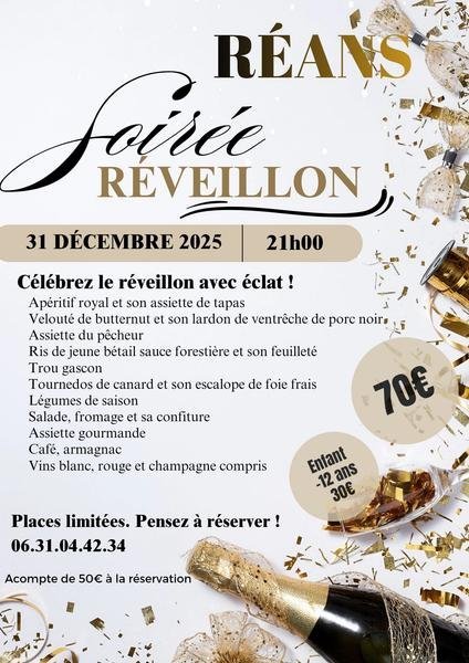 Venez fêter cette nouvelle année 2026 à nos côtés à partir de 21H à la Salle des Fêtes de Réans...