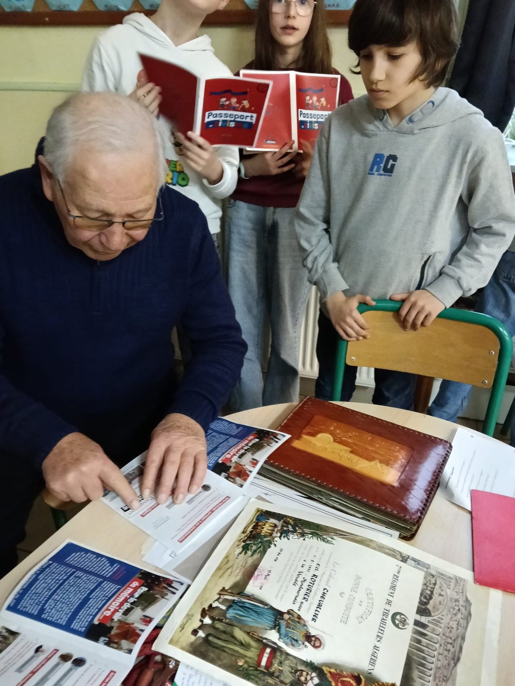 Dans le cadre du Passeport du civisme, les élèves de CM1 et CM2 ont eu l’honneur d’accueillir Roger Roturier, habitant de Réaumur, venu partager avec eux plusieurs passages de son vécu durant la guerre d’Algérie.