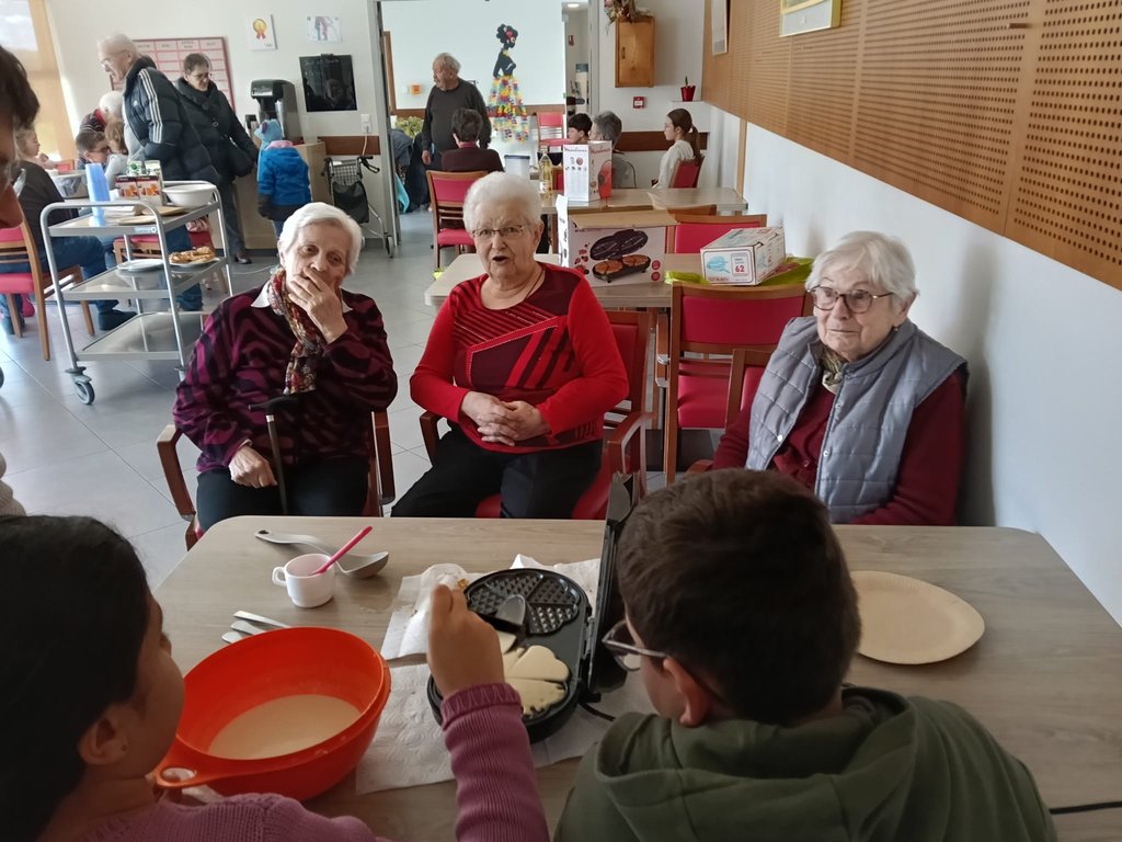 Aujourd’hui, les enfants du Conseil Municipal des Jeunes de Réaumur se sont rendus à la MARPA pour partager un moment convivial avec les résidents. Au programme : préparation, cuisson… et dégustation de délicieuses gaufres 🧇 faites ensemble.