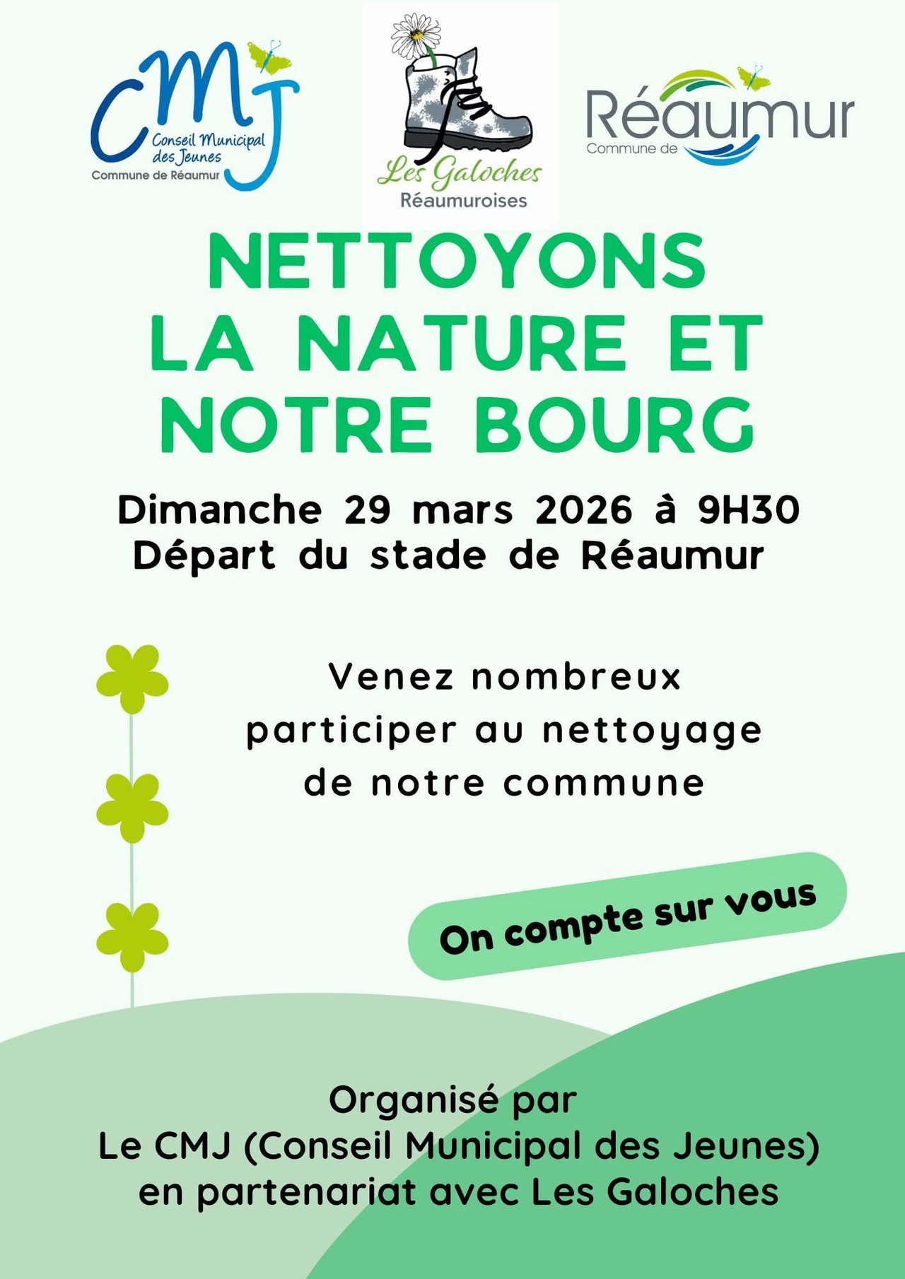 📆A noter, ce dimanche 29 mars, le Conseil Municipal des Jeunes vous invite Ă une balade "Nettoyons la nature et notre bourg"Â