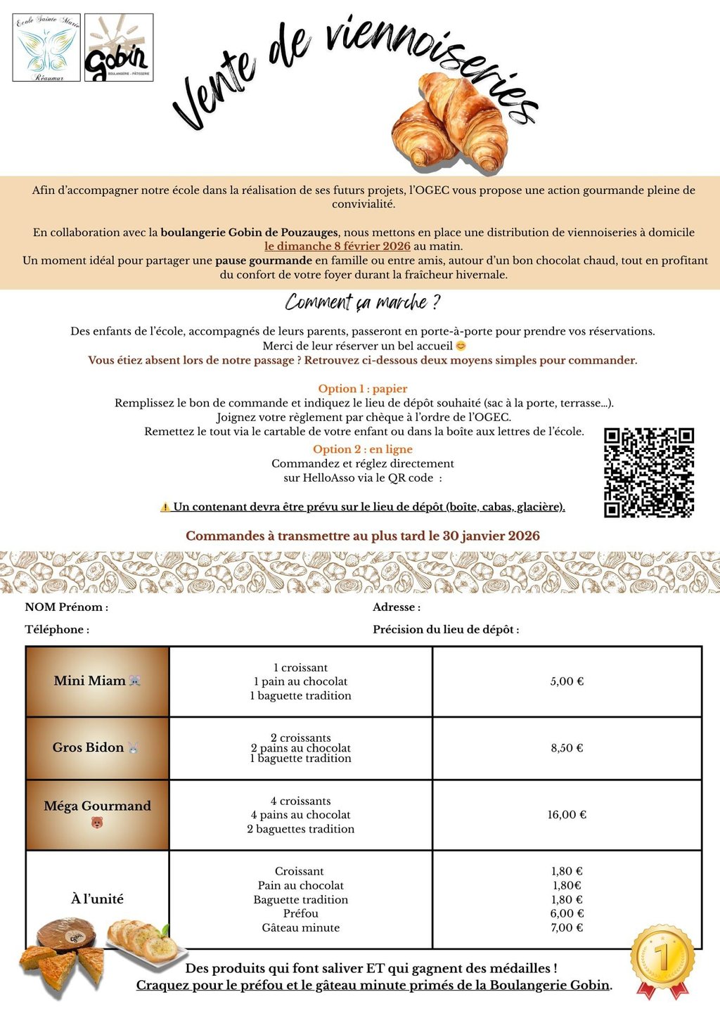 OGEC de l’école Sainte-Marie organise une vente de viennoiseries pour soutenir les projets de l’école tout en se régalant !