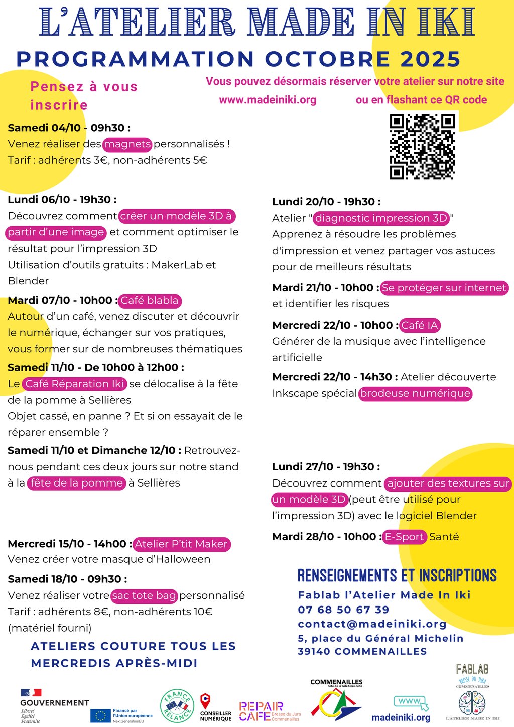 Le programme des ateliers et activités du Fablab du mois d'octobre est disponible !