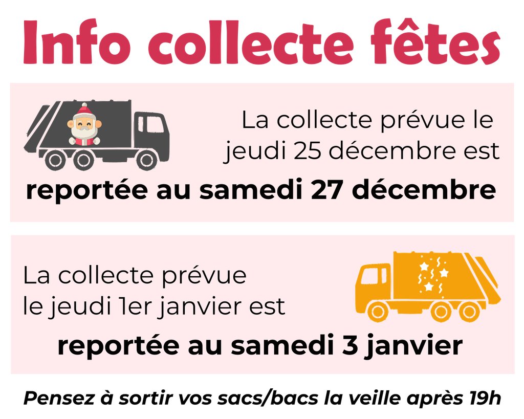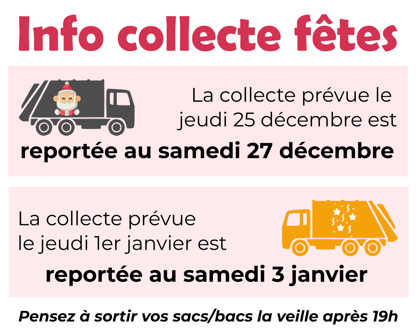 Collecte ordures ménagères et sacs jaunes - fêtes de fin d'année