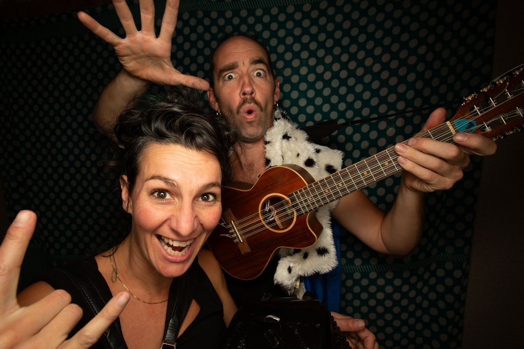 Lauren, àl’accordéon et au chant, tient sa position d'un franc-parler moqueur pendant que Jojo multi-instrumentiste essaie de lui voler la vedette avec burlesquerie. Dans ce show