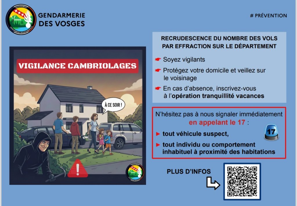 RECRUDESCENCE DU NOMBRE DES VOLS PAR EFFRACTION SUR LE DÉPARTEMENT