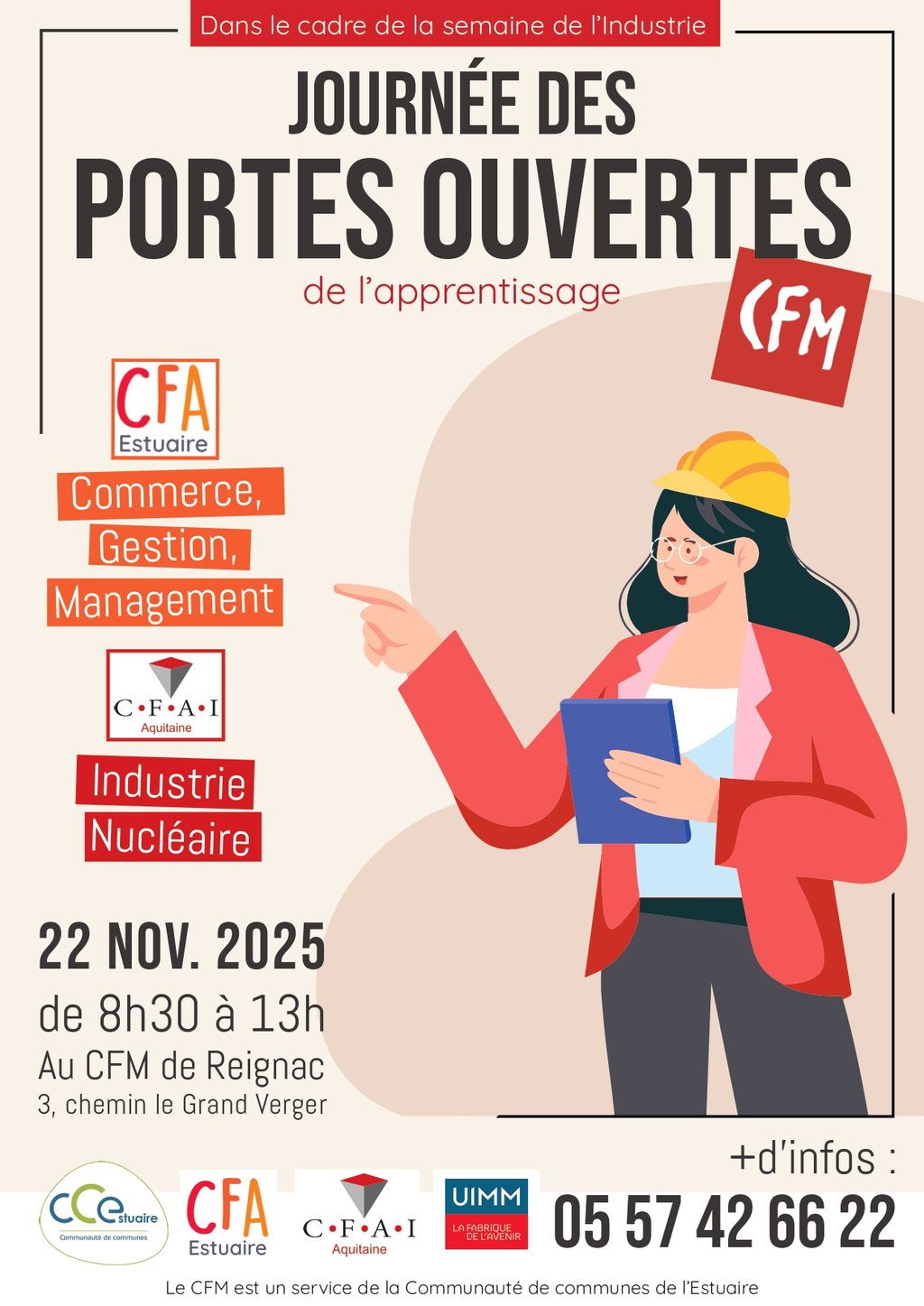 Ne manquez pas le rendez-vous au CFA Estuaire : nous vous ouvrons nos portes le samedi 22 novembre, de 8h30 à 13h.