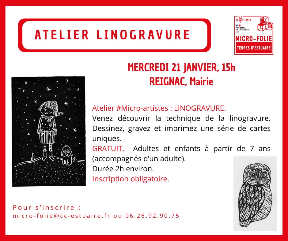 Mercredi 21 janvier : 15h : Atelier # Micro artistes : LINOGRAVURE.