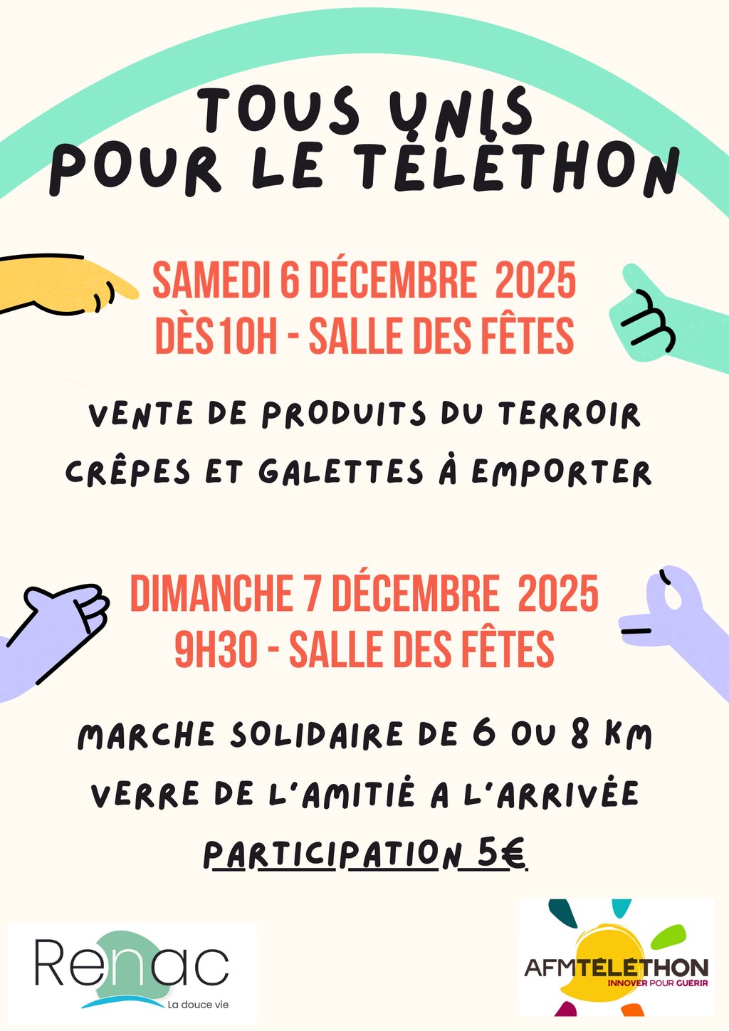 Renac se mobilise, vente de produits et marches solidaires au profit du Téléthon les 6 et 7 décembre.