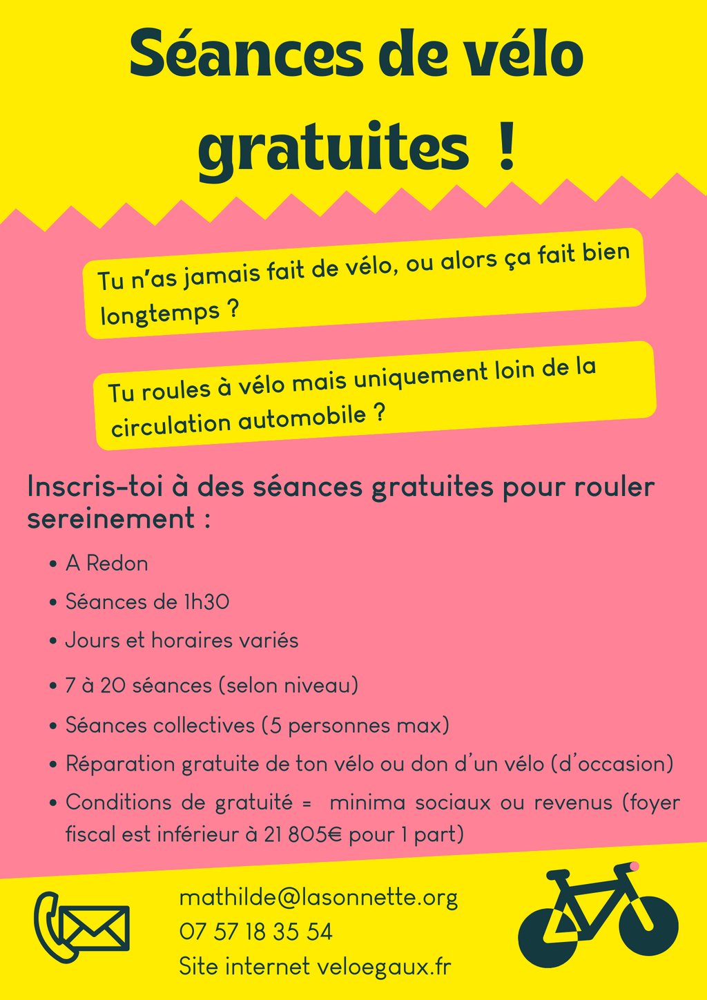 Il existe des séances de vélo gratuites à Redon pour se mettre ou remettre en selle et se déplacer à vélo en sécurité et se sentir en confiance.
