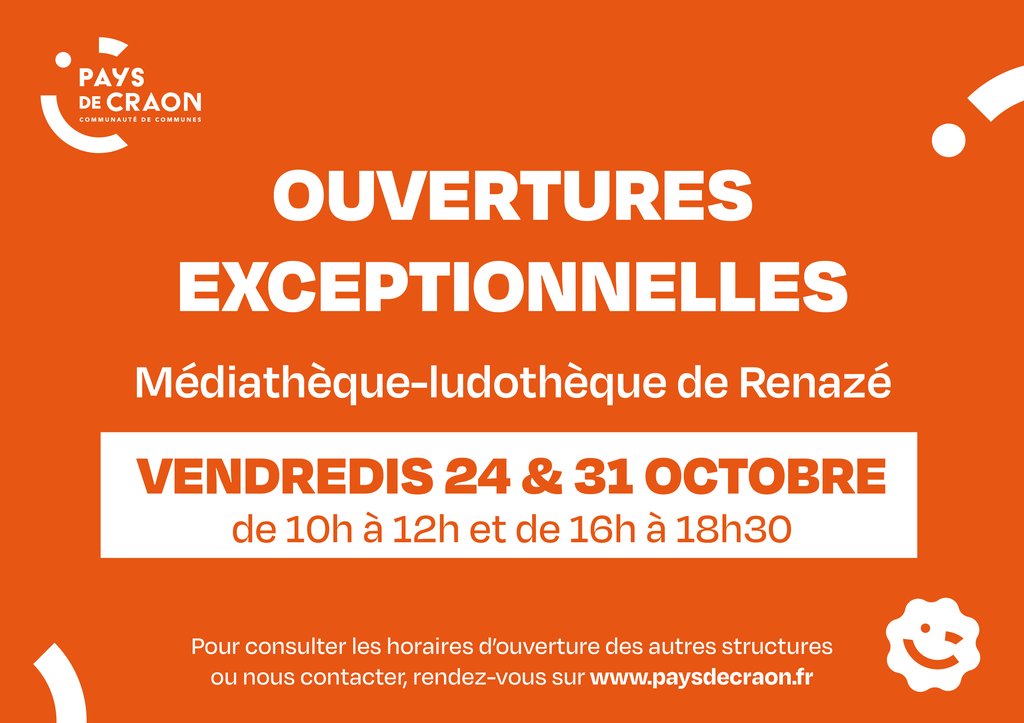 OUVERTURES EXCEPTIONNELLES DE LA MÉDIATHÈQUE-LUDOTHÈQUE DE RENAZÉ PENDANT LES VACANCES SCOLAIRES !