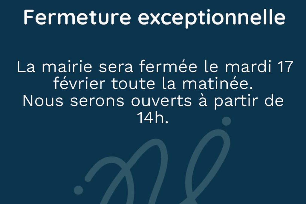 La mairie sera fermée le mardi 17 février toute la matinée.