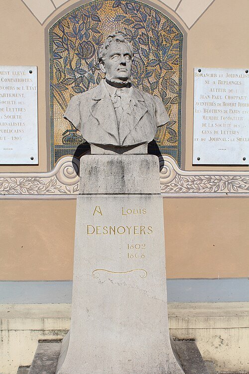 Buste, en bronze à l’origine, en pierre actuellement, représentant le journaliste et romancier Louis Desnoyers, sur un piédestal en pierre et adossé au pignon d’une maison. Le bronze était dû au sculpteur mâconnais Pierre Alexandre Morlon, la mosaïque de style Art-déco qui sert d’arrière-plan au peintre et décorateur Henri Rapin (1873-1939), connu entre autres pour avoir conçu et décoré la résidence du Prince Asaka à Tokyo.