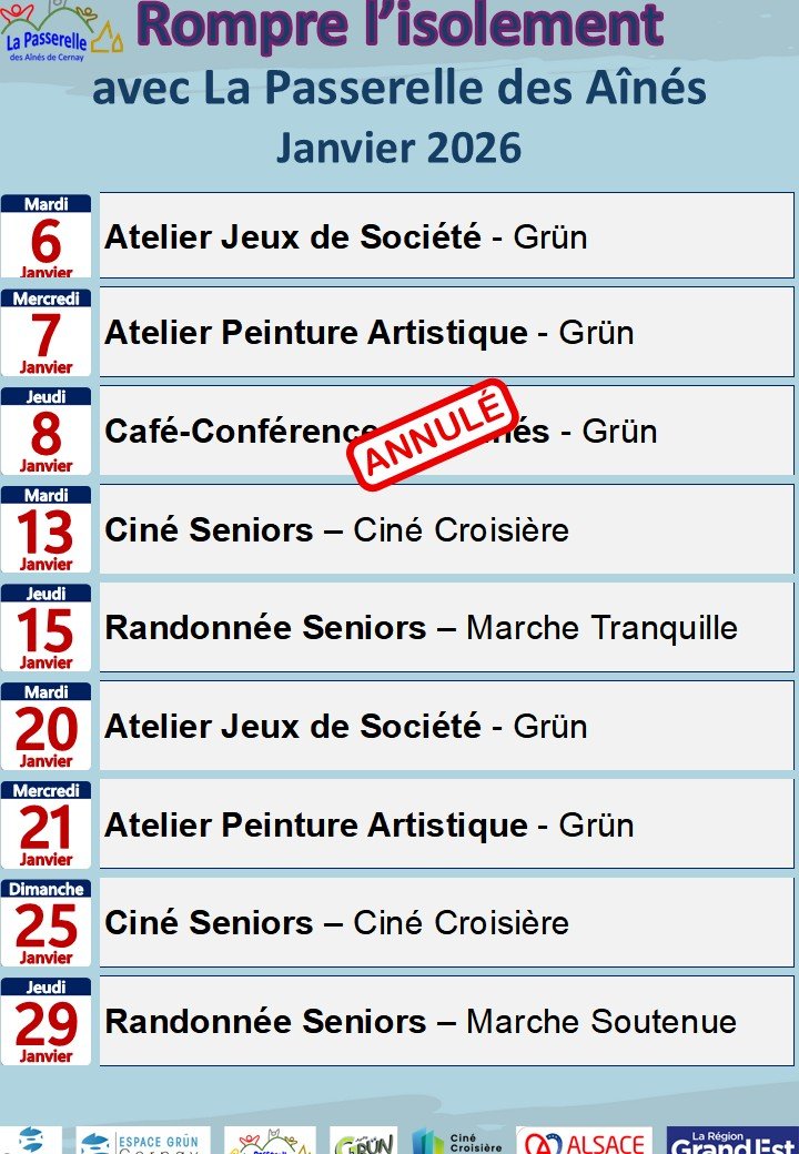 Activités organisées par La Passerelle des Aînés pour les seniors du mois de janvier.