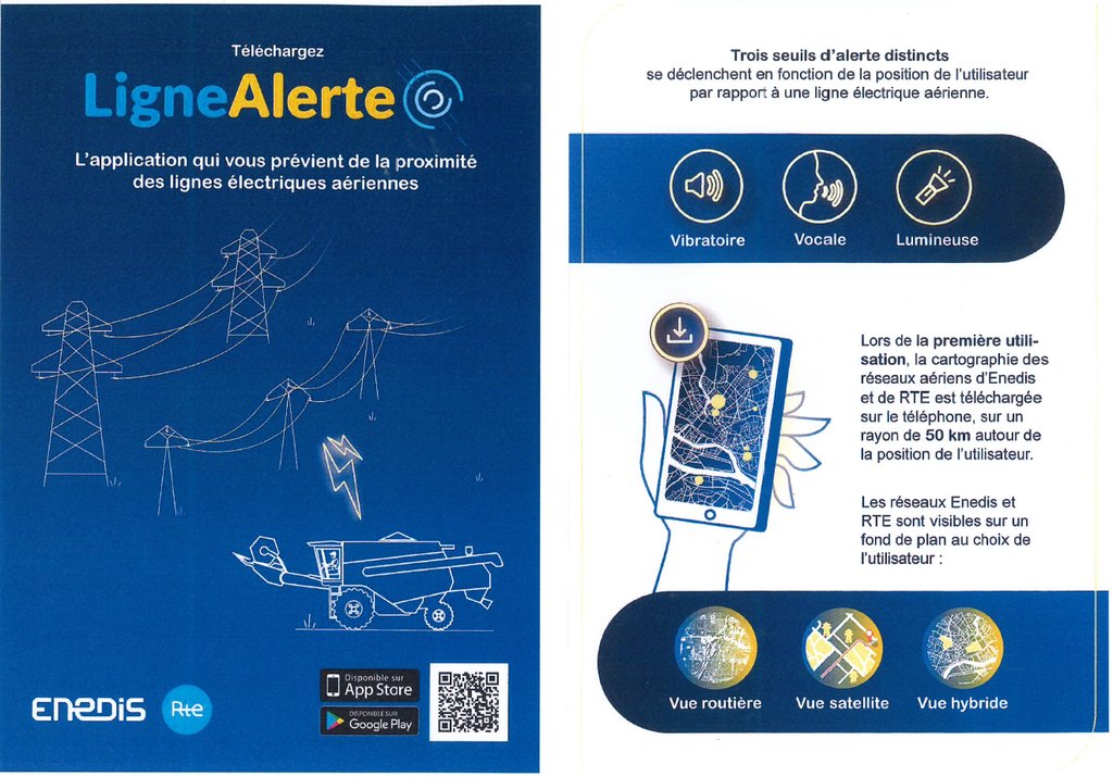 L'affiche correspond à un flyer sur une nouvelle application développée par ENEDIS qui vous prévient sur la proximité des lignes électriques aériennes.