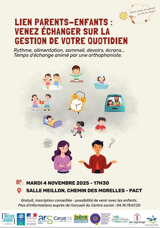 Temps d'échange sur le quotidien des parents animé par une orthophoniste - mardi 4 novembre à 17h30 à la salle Meillon à Pact