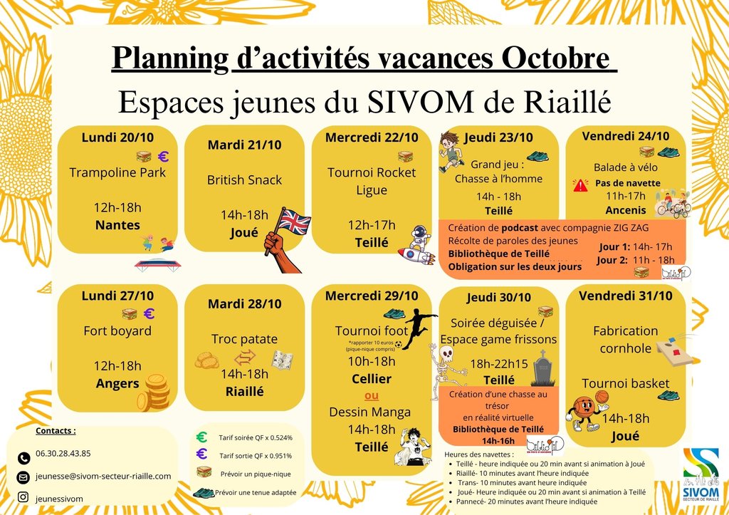 PROGRAMME DES ESPACES JEUNES - SIVOM DE RIAILLÉ - VACANCES D'OCTOBRE 2025