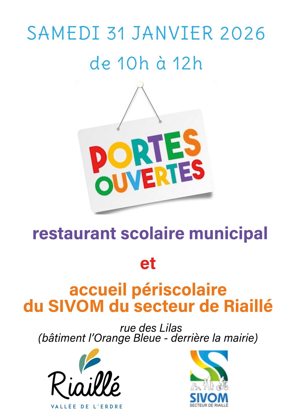 Le restaurant scolaire municipal de Riaillé et l'accueil périscolaire du SIVOM du secteur de Riaillé vous ouvrent leurs portes ce samedi 31 janvier, de 10h à 12h.
