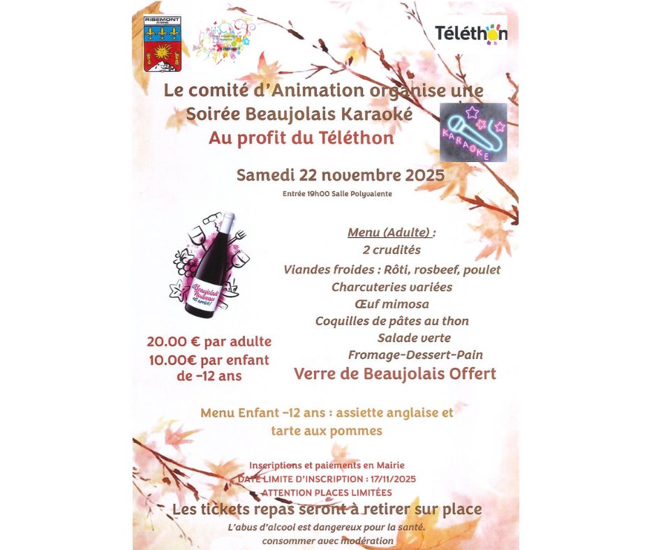 SOIRÉE BEAUJOLAIS & KARAOKÉ AU PROFIT DU TÉLÉTHON !