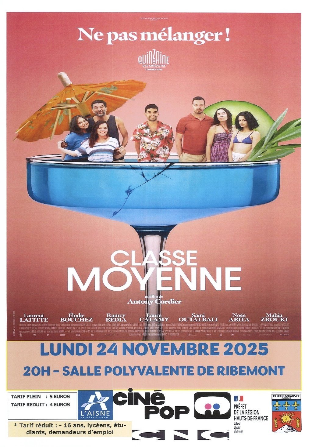 Nous vous donnons rendez-vous le lundi 24 novembre 2025 à 20h à la salle polyvalente de Ribemont pour la projection du film Classe moyenne.