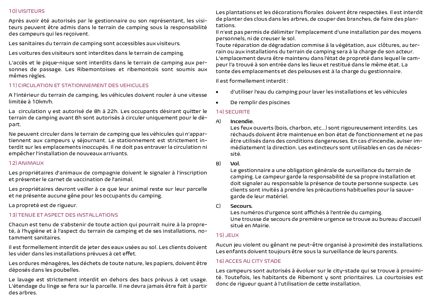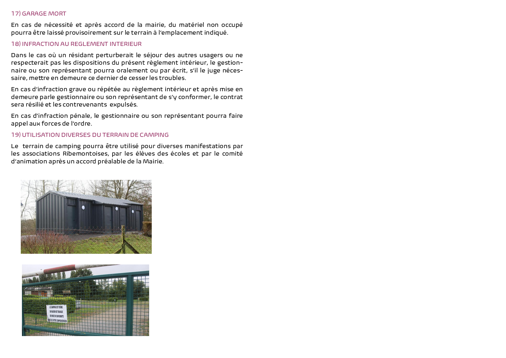 Elles sont équipées de points d'eau, de WC, Bornes électriques, de bacs à laver et de poubelles.
