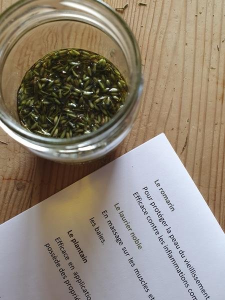 Venez confectionner vous-même votre huile de soin à partir d'une plante de votre choix (lavande, plantain, romarin, laurier noble...).