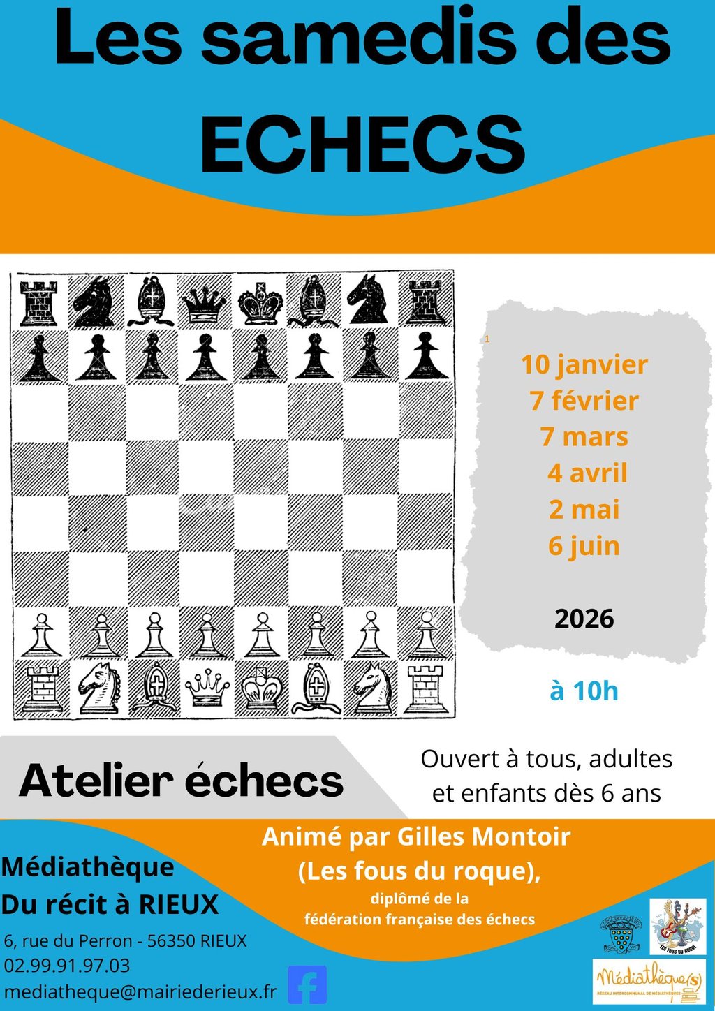 ♟️ Ateliers de découverte des échecs à la Médiathèque de Rieux ♟️