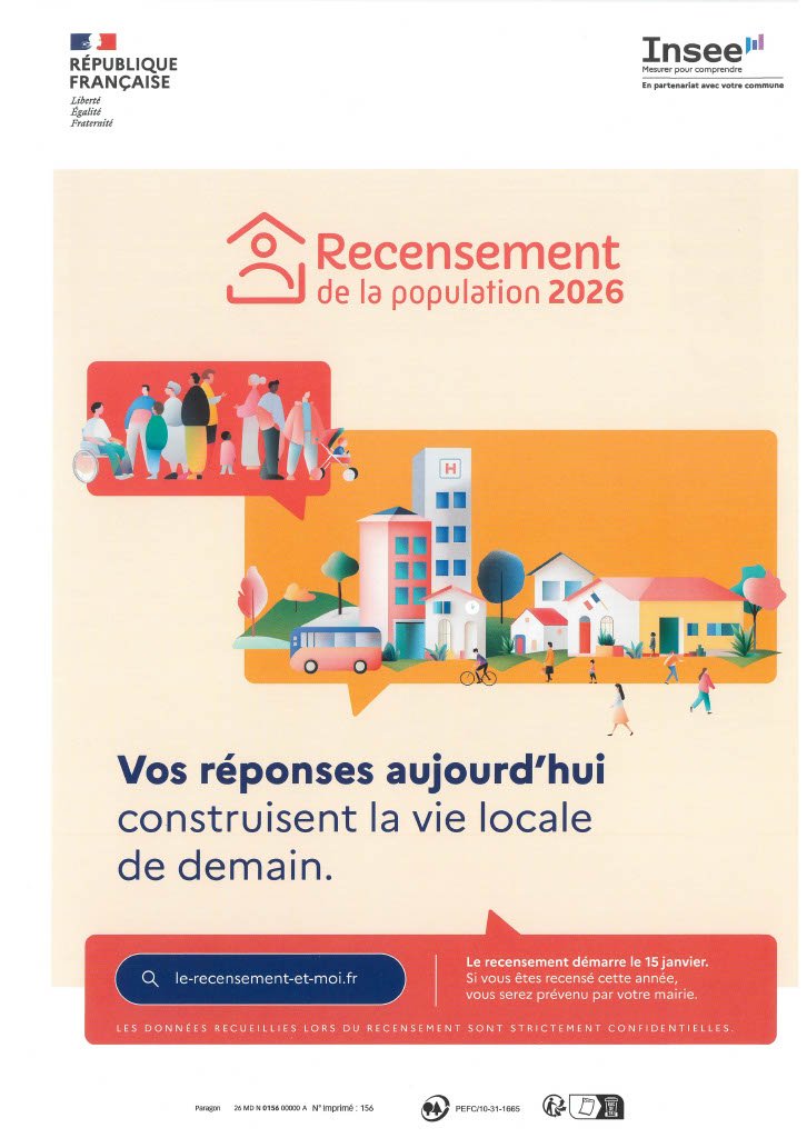 Le recensement de la population 2026 débutera dans notre commune le jeudi 15 janvier 2026.
