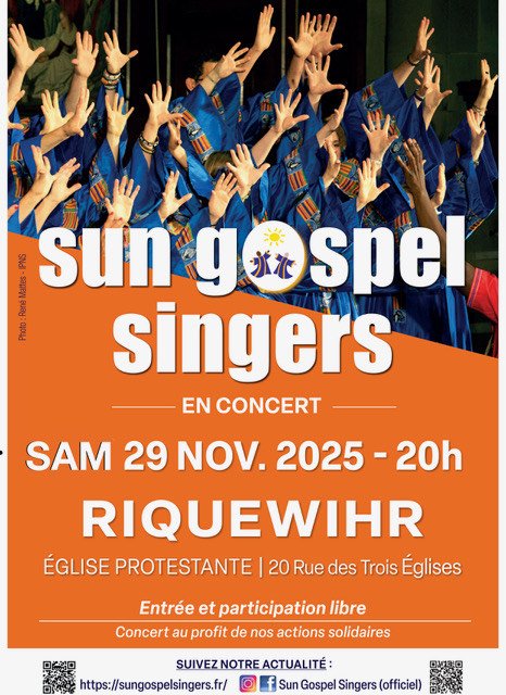 Concert Gospel organisé par le comité des fêtes à l’église protestante le samedi 29/11 à 20H